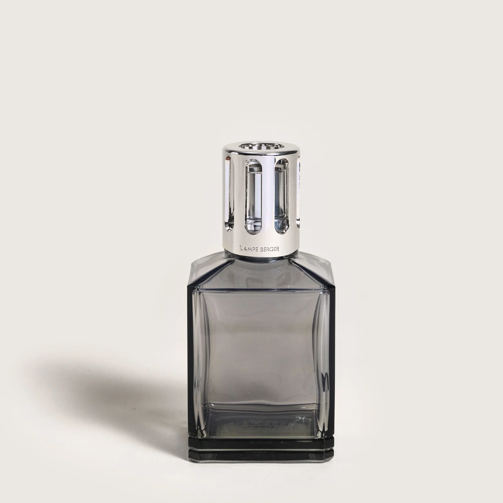 Modelo esencial en vidrio gris, diseño armonioso y minimalista.