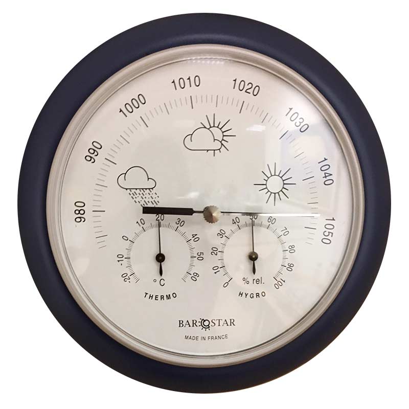 Instrumento sobre madera color azul satinado, arillo en aluminio.