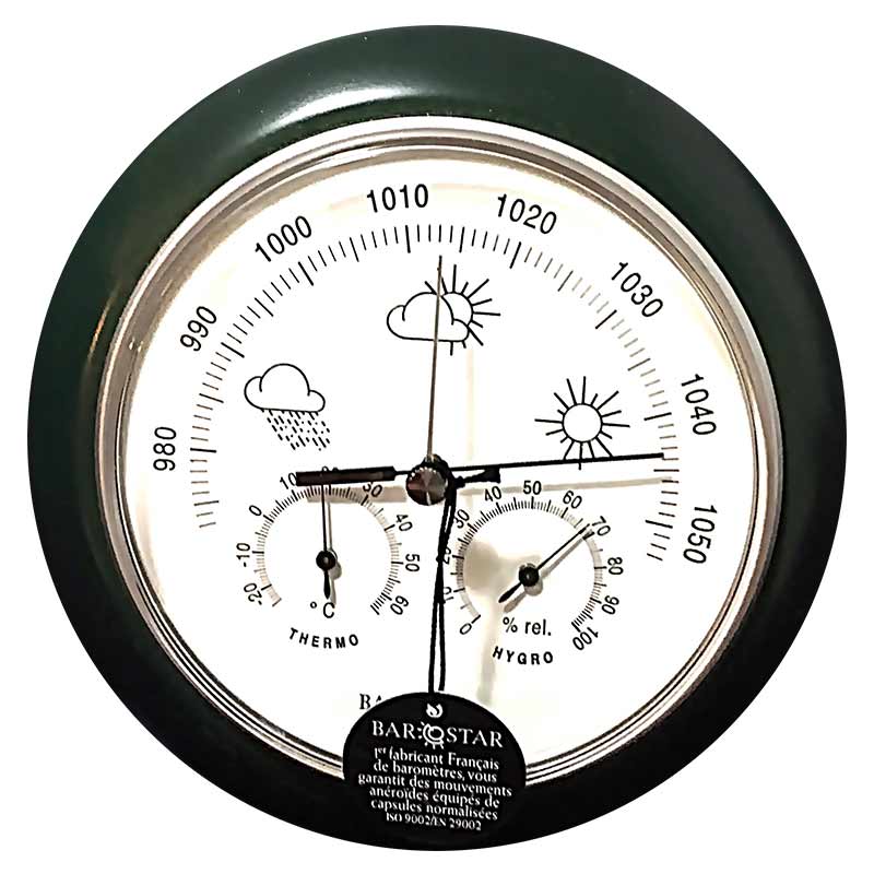 Instrumento sobre madera color verde satinado. arillo en aluminio.
