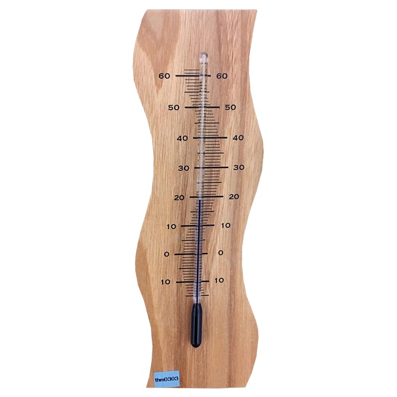 Termómetro de alcohol sobre madera de olmo, forma ondulada.